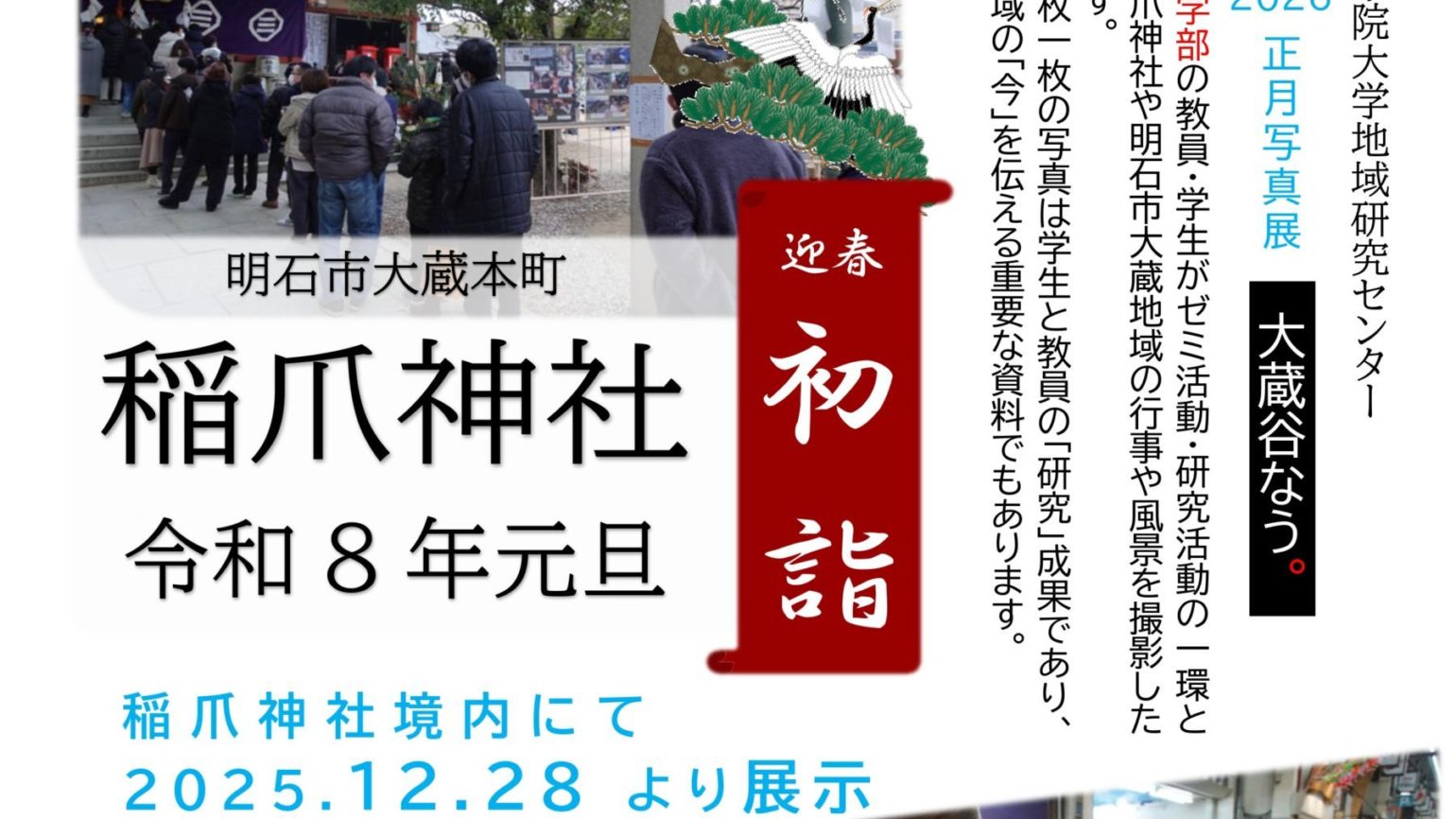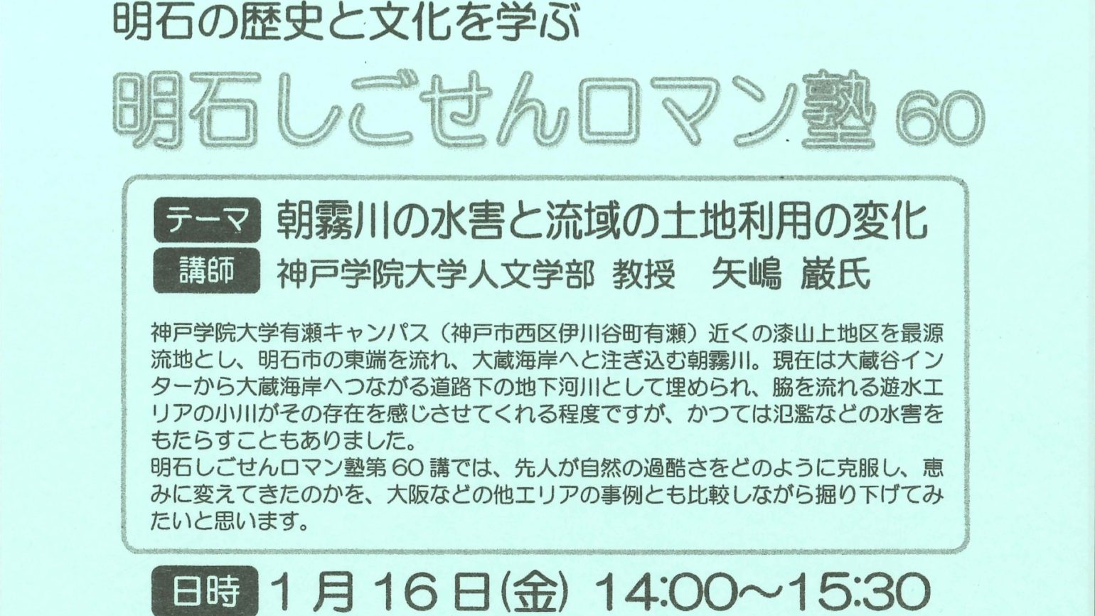 2026年2月28日(土)、地域研究センターでは、あかし市民図書館と共催のかたちで「大蔵谷ヒューマンサイエンスカフェ2025」を実施いたします。