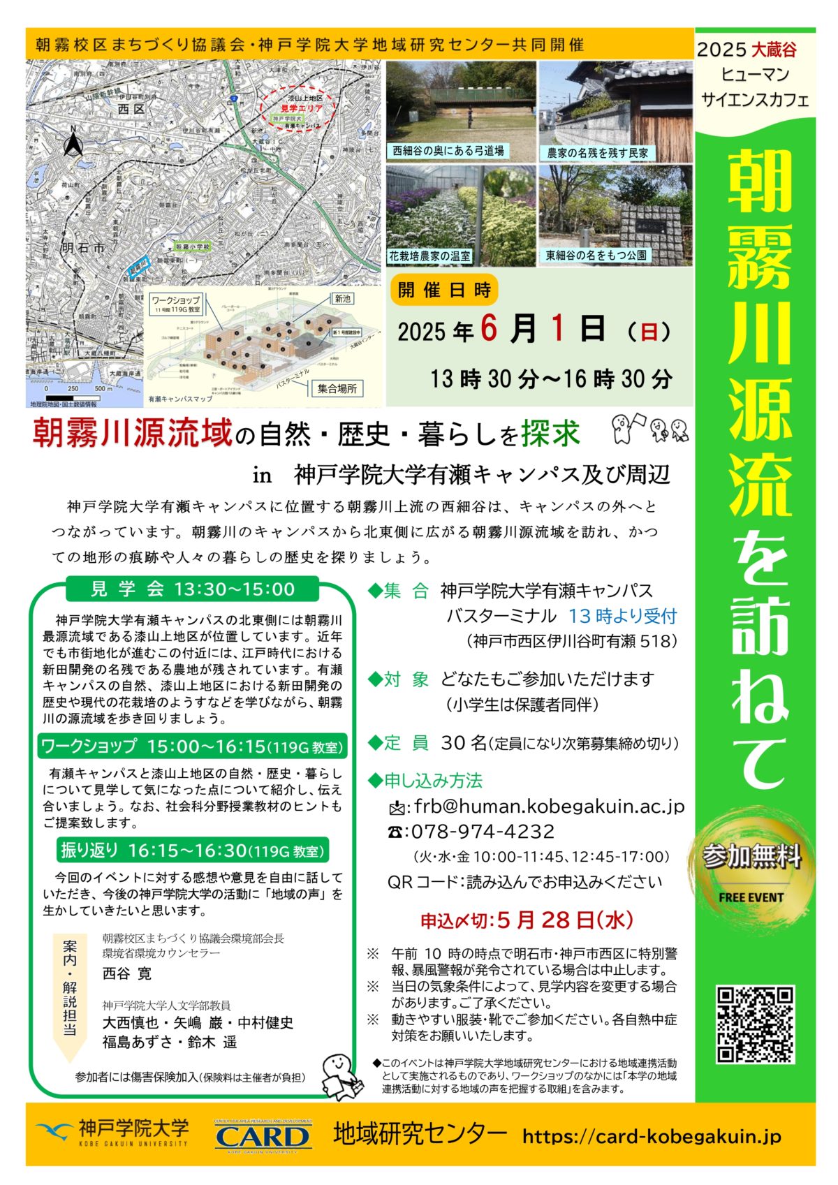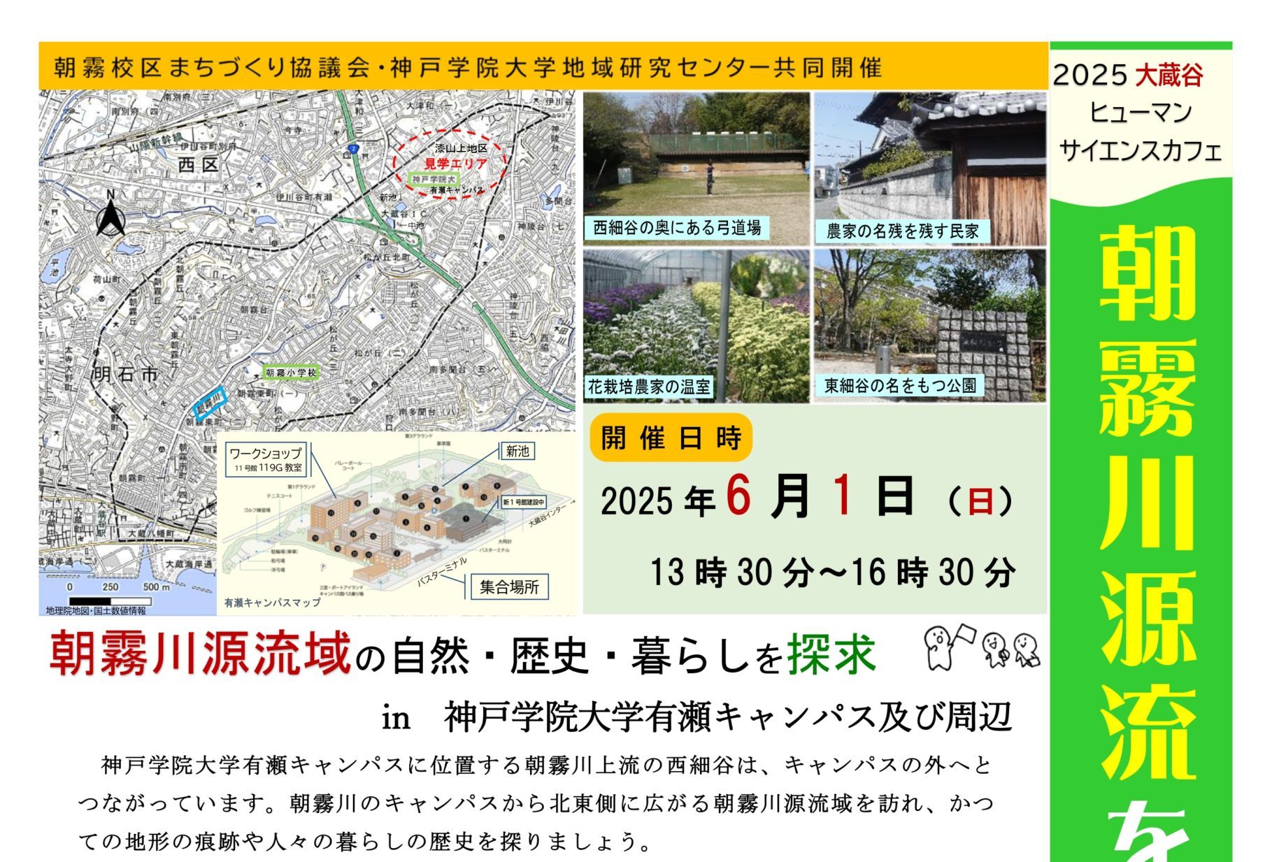 6月1日(日)に朝霧校区まちづくり協議会環境部会と共催で『朝霧川源流を訪ねてー朝霧川源流域の自然・歴史・暮らしを探求』を実施します。ご参加をお待ちしております。