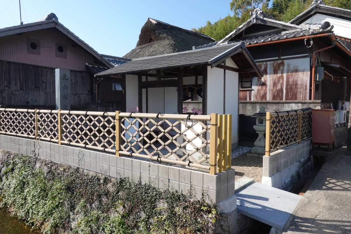 印路の掘割沿いには「乳女郎大明神」と呼ばれる小祠があります(神戸市西区平野町印路字畑屋敷198)。祠の前を流れる掘割には乳女郎橋という橋が架けられ、古くから掘割の絵図などに記されています。祠にある丸い石を授かって帰ると乳の出がよくなるとされ、お礼参りをするときに石を持参するのがしきたりだったとか。粉ミルクのない時代、乳の出はときに乳児の生死を左右する問題でした。昔の人の深い信仰心が見て取れます。